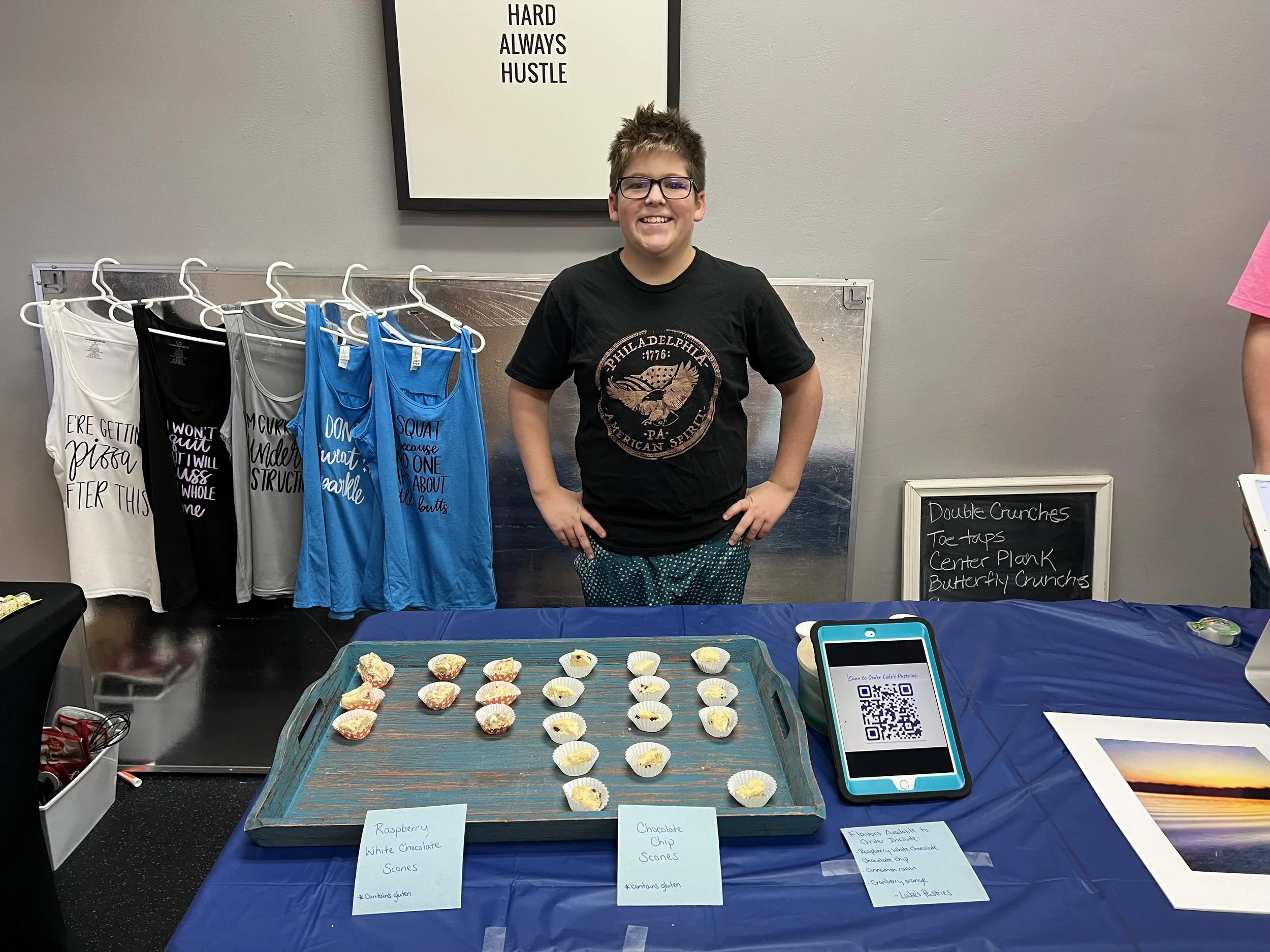 Luke began learning to cook and bake when he was around eight years old. He started out by cooking eggs for his twin brother, and he discovered that he LOVED cooking. In the fall of 2023, Luke’s mom hosted a vendor fair for small businesses. Luke decided that there might be a niche market for scones, since other local bakeries seemed more focused on cookies, cupcakes, etc. He brought samples for potential customers to taste, and there was a lot of interest in his scones!